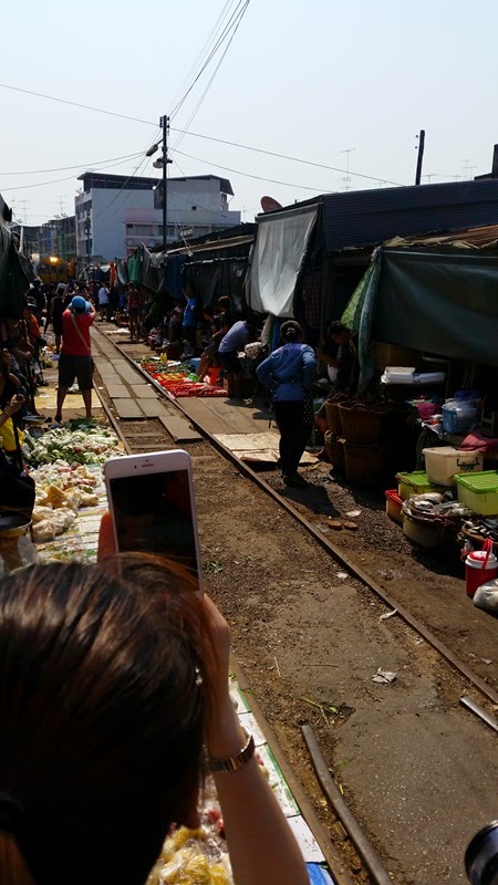 for private driver for 3 days as we have 7 persons. 1st stop is Maeklong Railway Market, selling seafood, meat and vegetable along the train path. The train will come in at 9.45am and the vendors will quickly keep their stuff and tent cover, the train will move pass and a lot of tourist armed with their camera and phone take photo and video of the train passing by. Amazed at how the vendor making their living